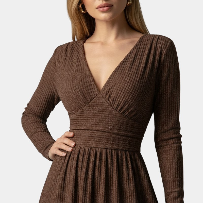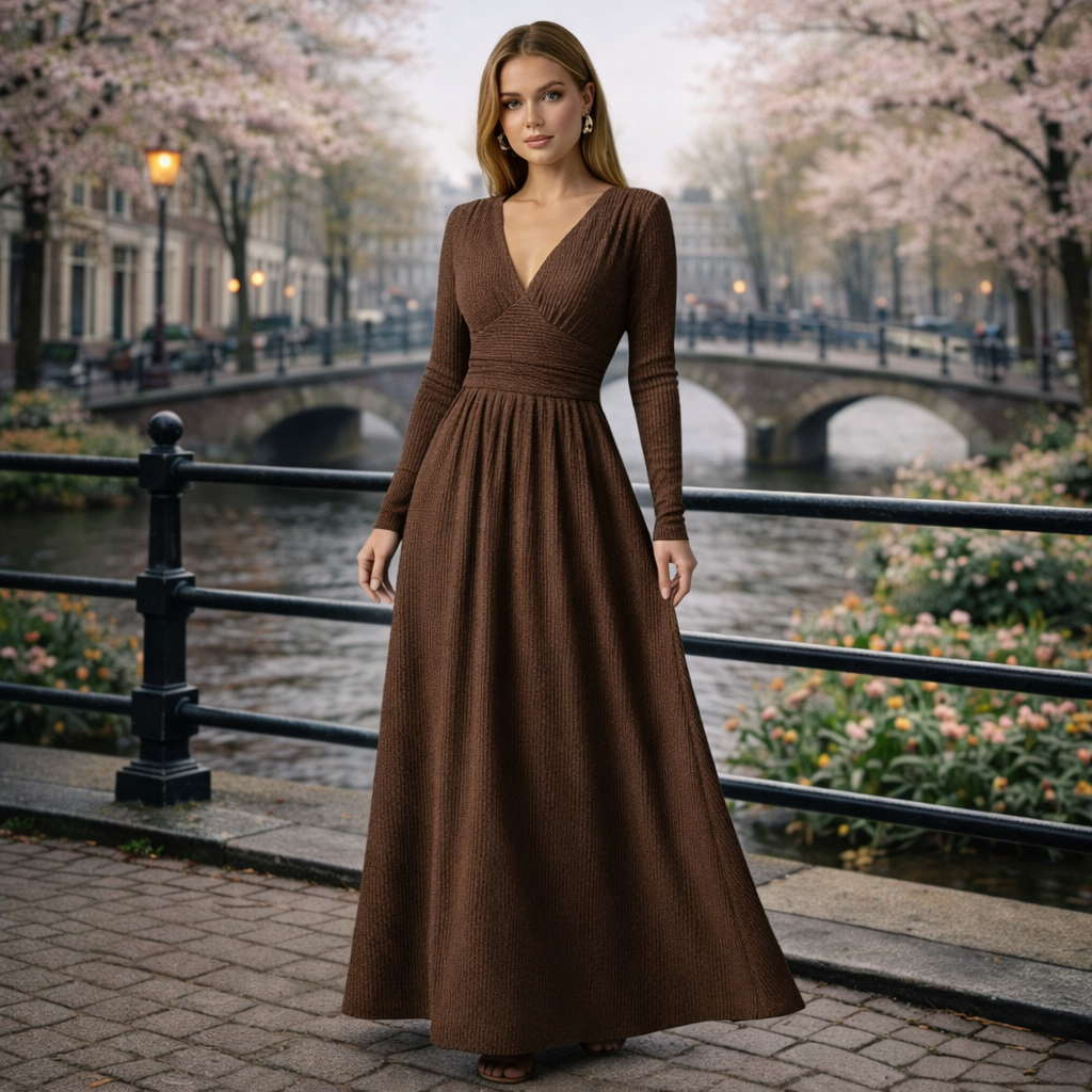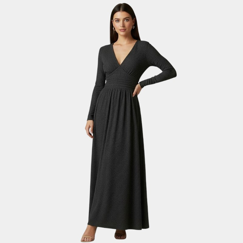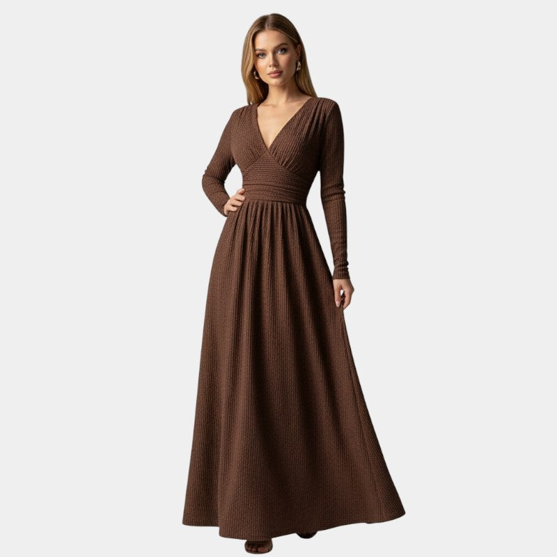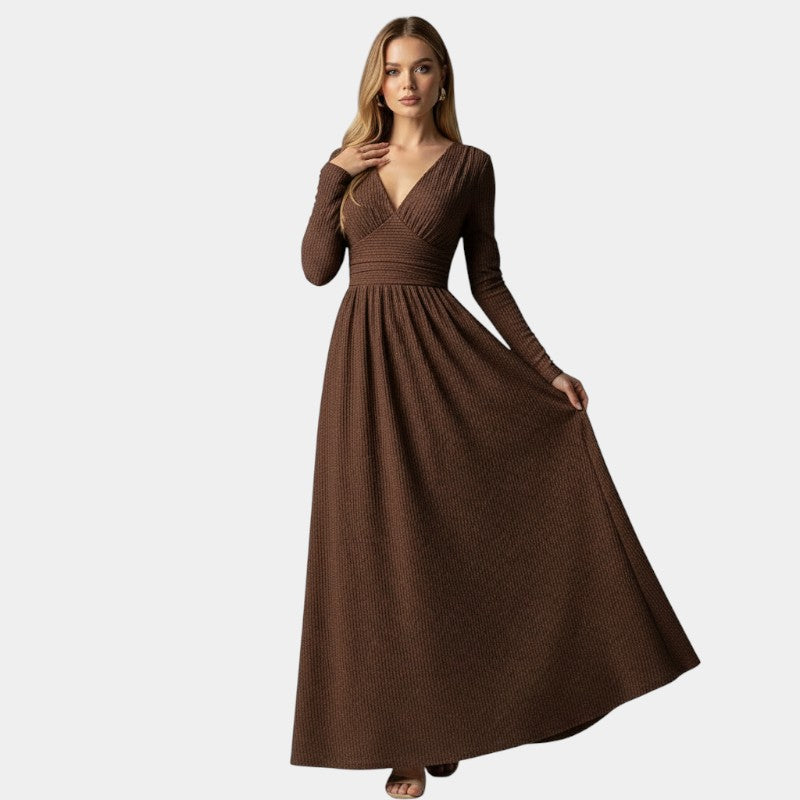 Gleame | Dames A-Lijn Maxi Jurk V-Hals Lange Mouw