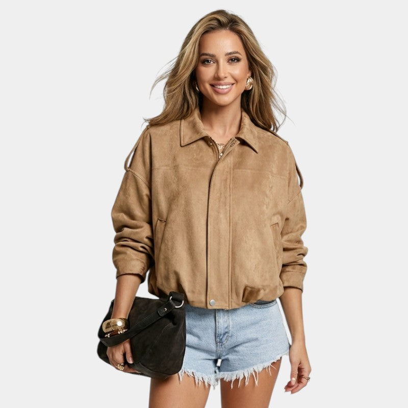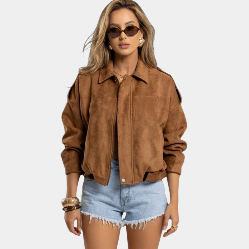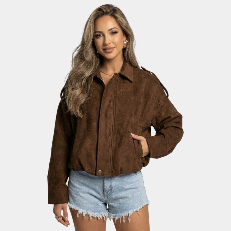 Gleame | Dames Jas Met Rits Lange Mouw Klassieke Pasvorm