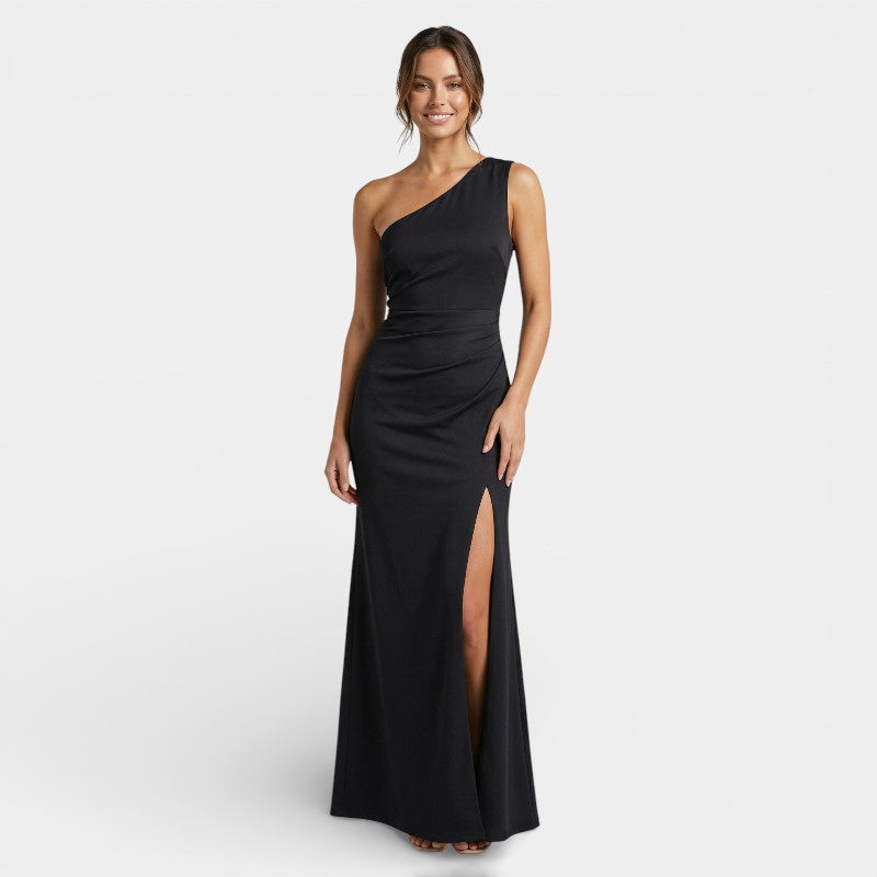 Gleame | Dames Maxi Jurk Eén Schouder Aansluitende Pasvorm Elegant