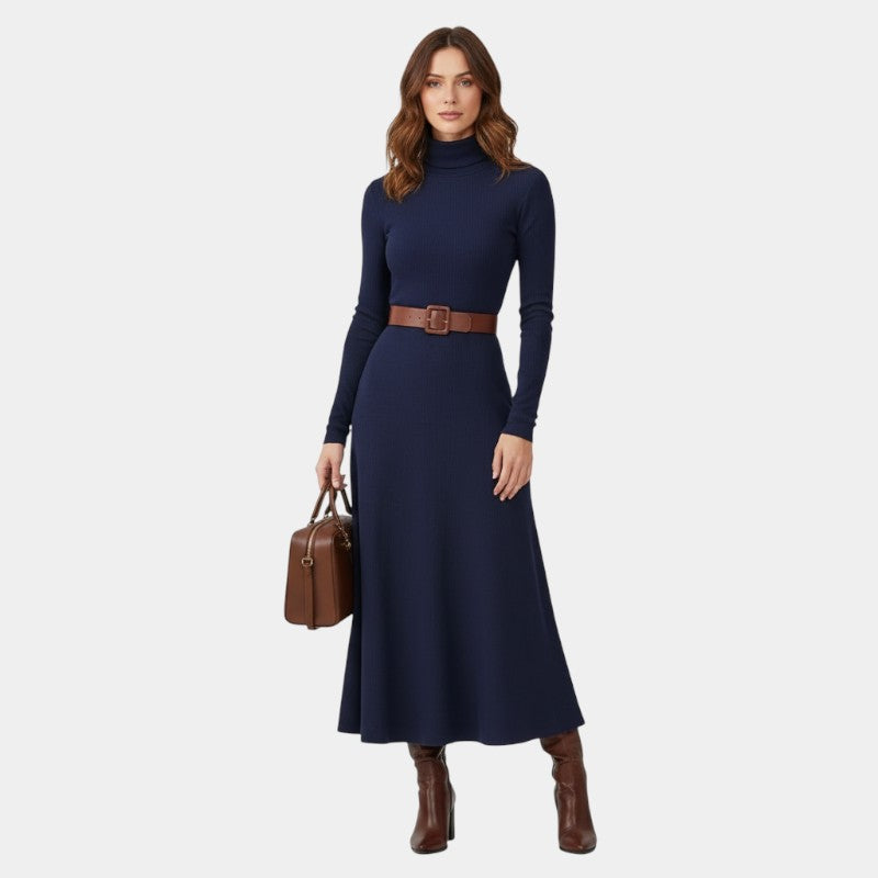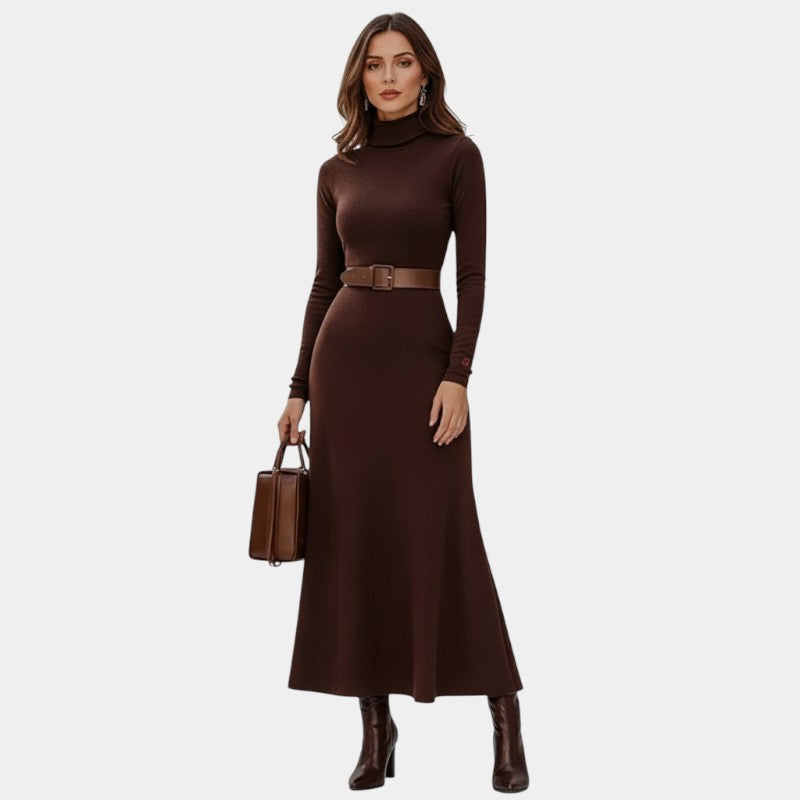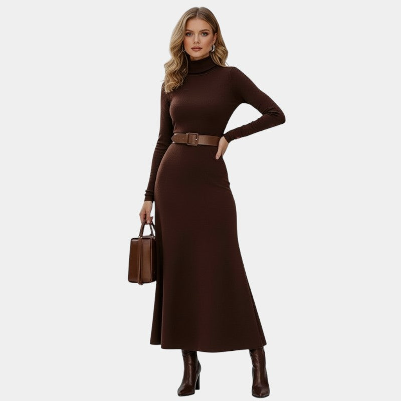 Gleame | Dames Maxi Jurk Hoge Hals Aansluitende Pasvorm Elegant
