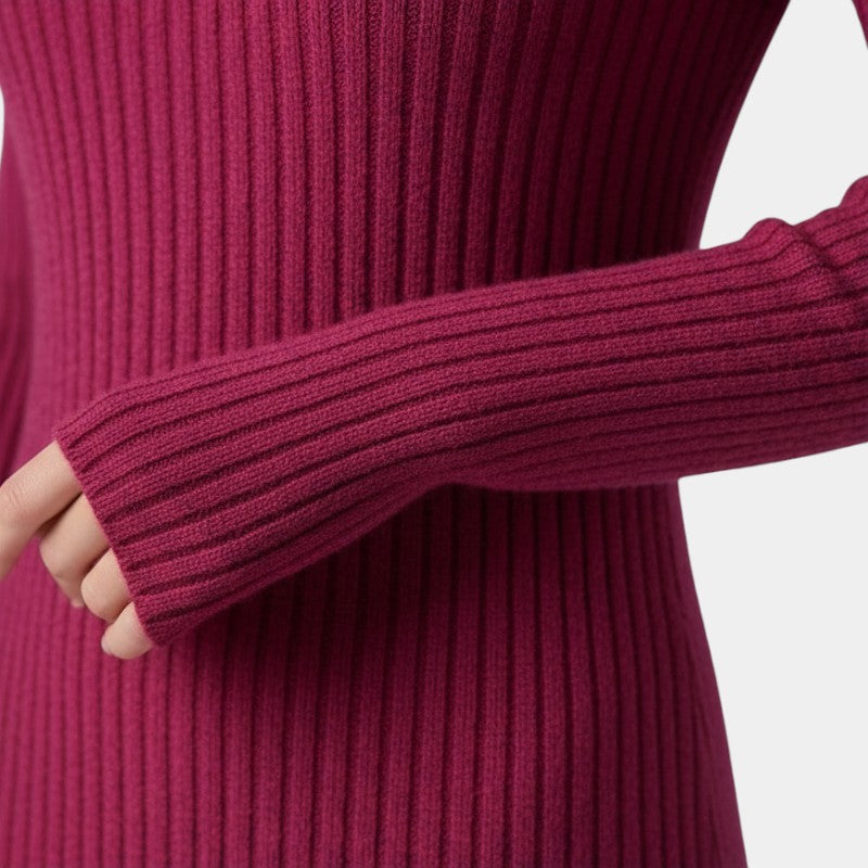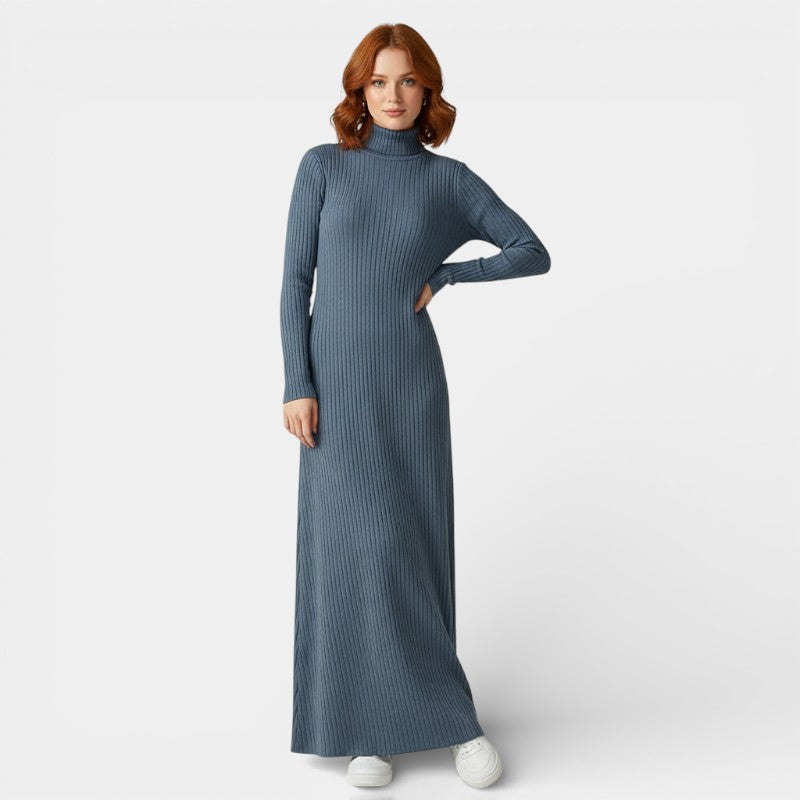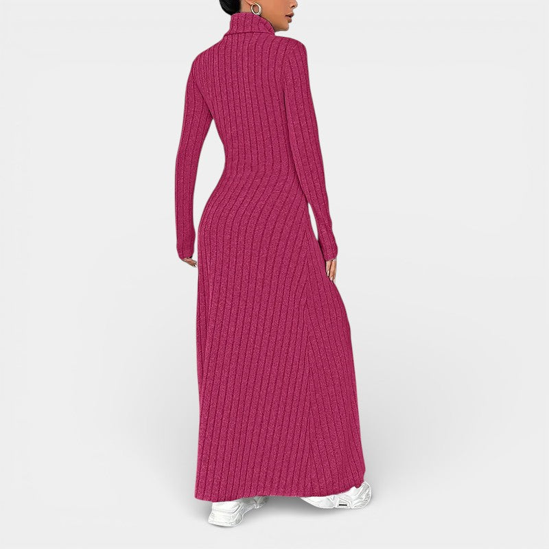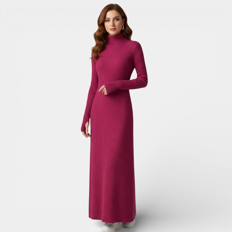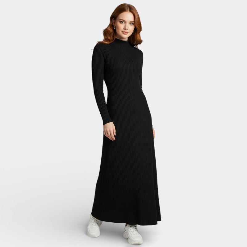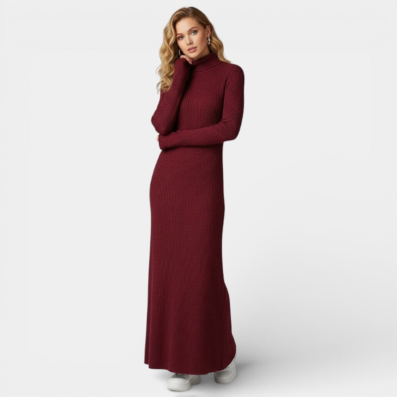 Gleame | Dames Maxi Jurk Hoge Hals Lange Mouw Aansluitend