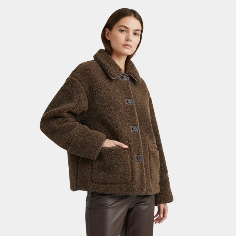 Gleame | Dames teddy jas met knopen en opgestikte zakken