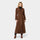 De knopen aan de voorzijde vormen het centrale sluitpunt. Een riem rond het middel maakt aanpassing mogelijk. De mouwuiteinden hebben een vastgezet banddetail dat de lijn van de mouw behoudt.