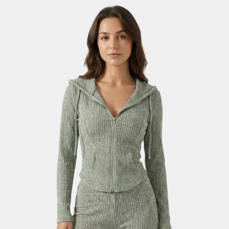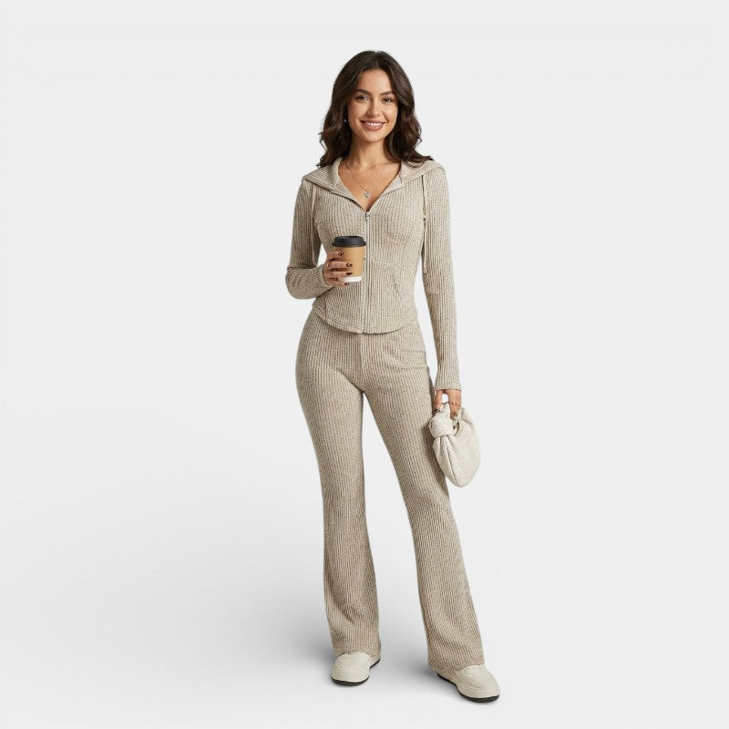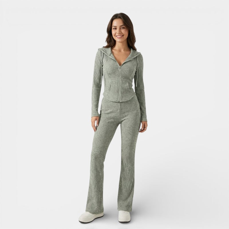 Gleame | Dames Tweedelige Set Geribde Structuur Aansluitende Pasvorm