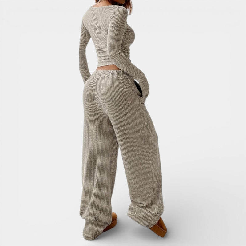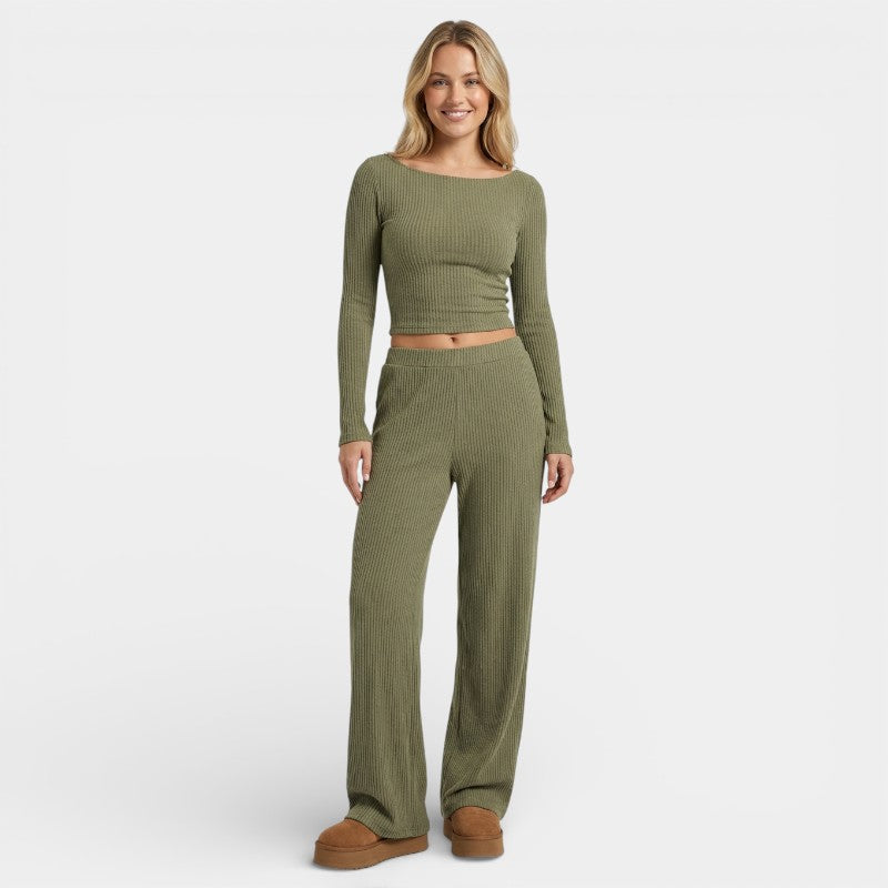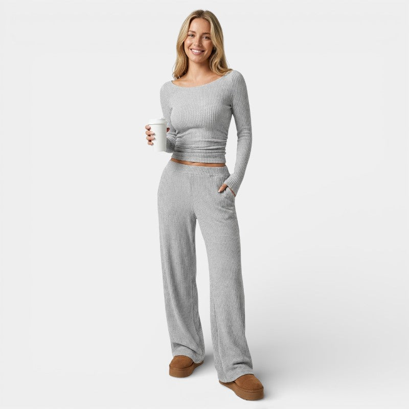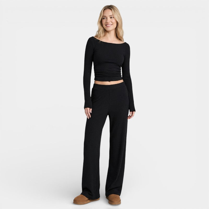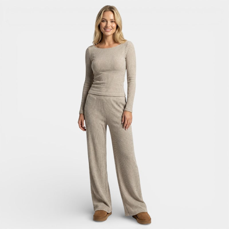 Gleame | Dames Tweedelige Set Geribde Structuur Ronde Hals