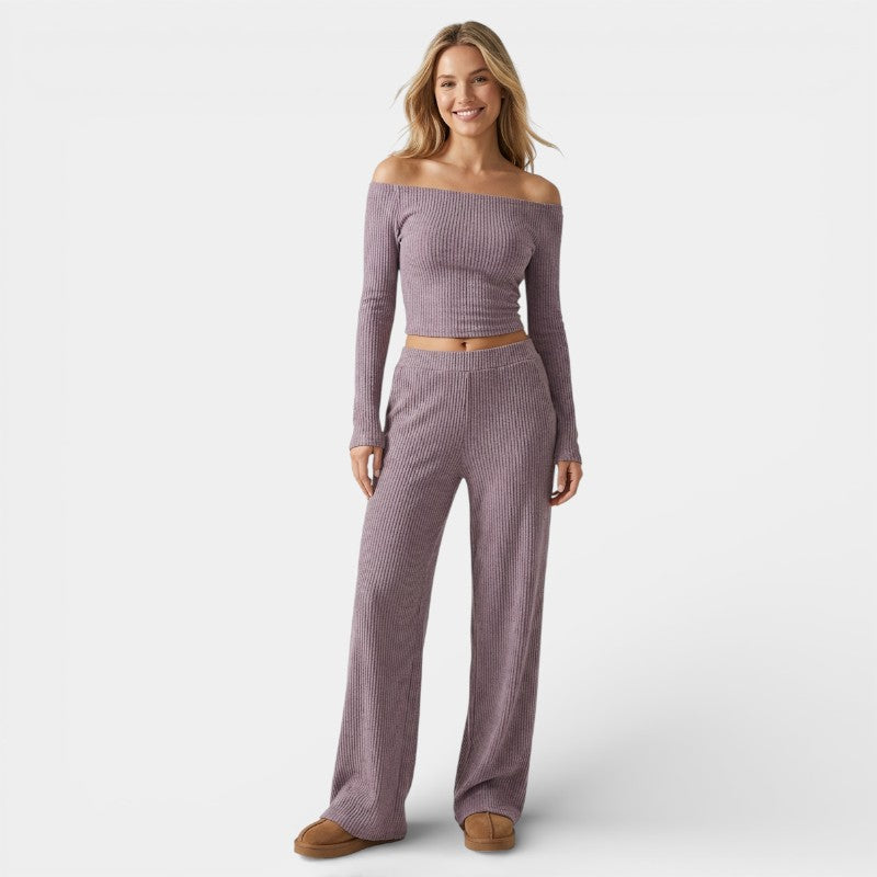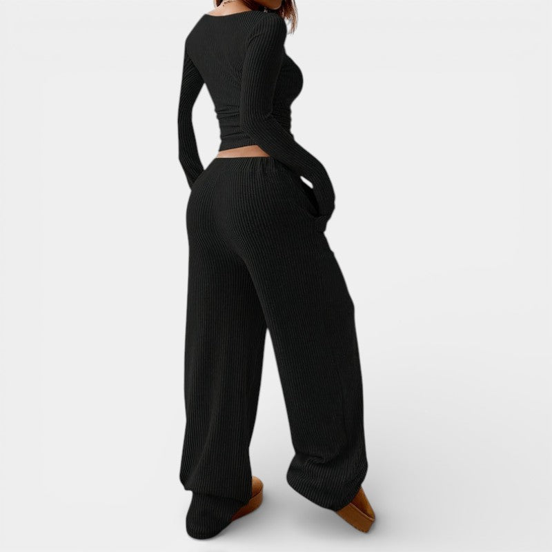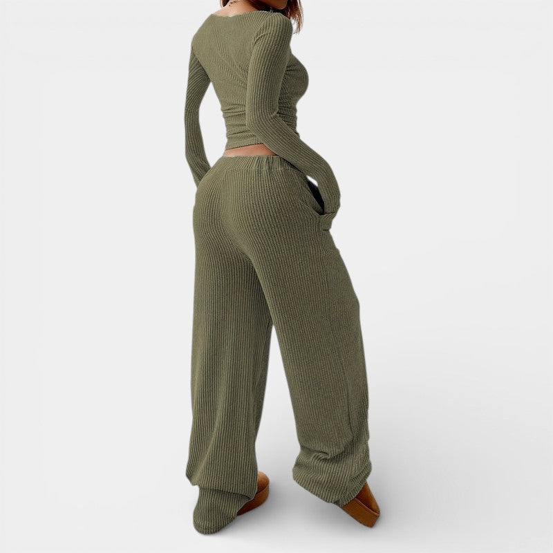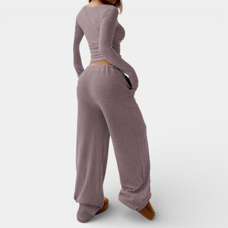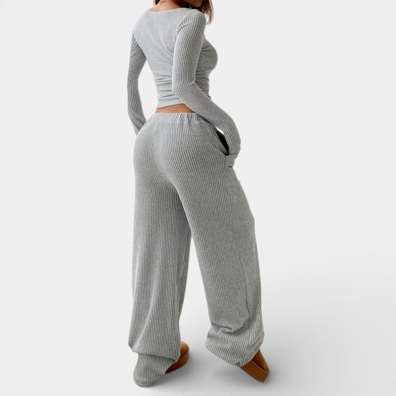 Gleame | Dames Tweedelige Set Geribde Structuur Ronde Hals