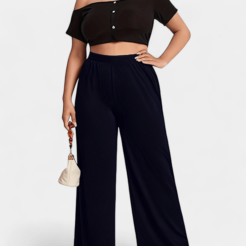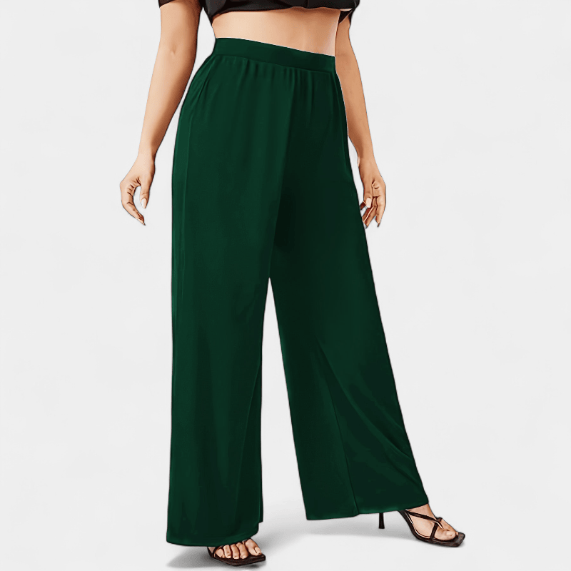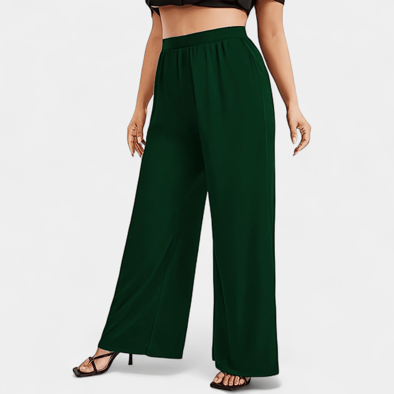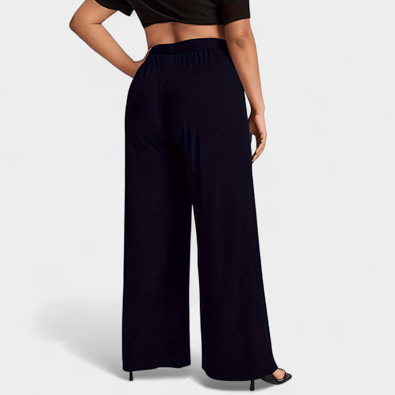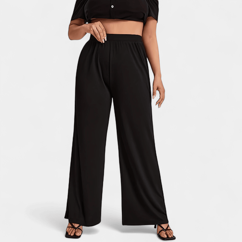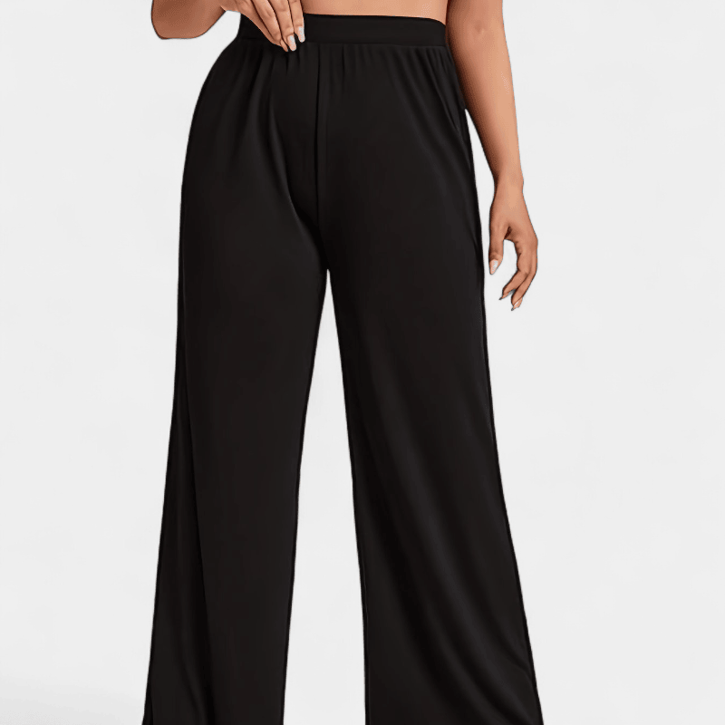 Gleame Lange Broek - Plus size lange dames broek met wijde pijpen van hoog rekbare gebreide stof